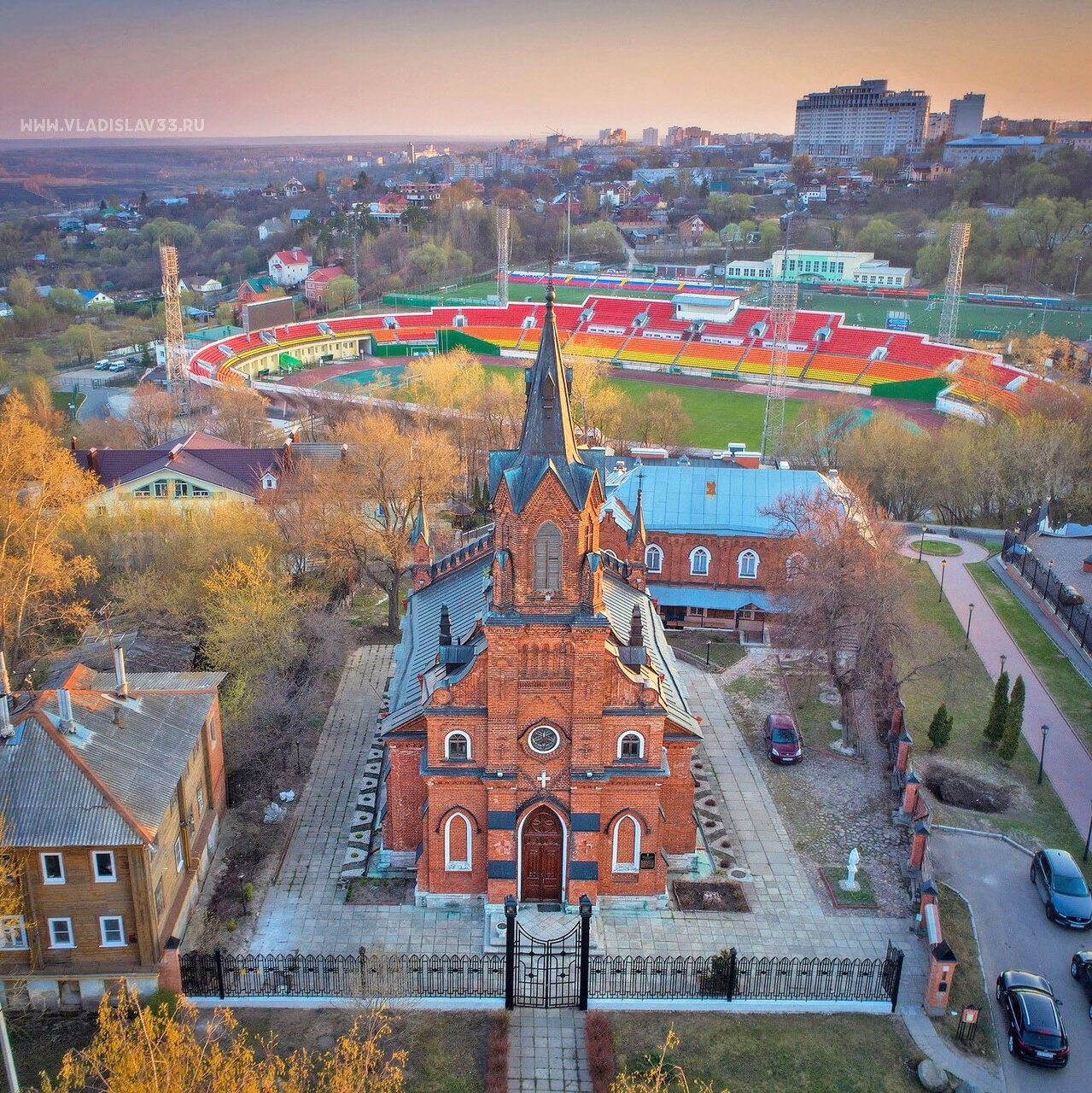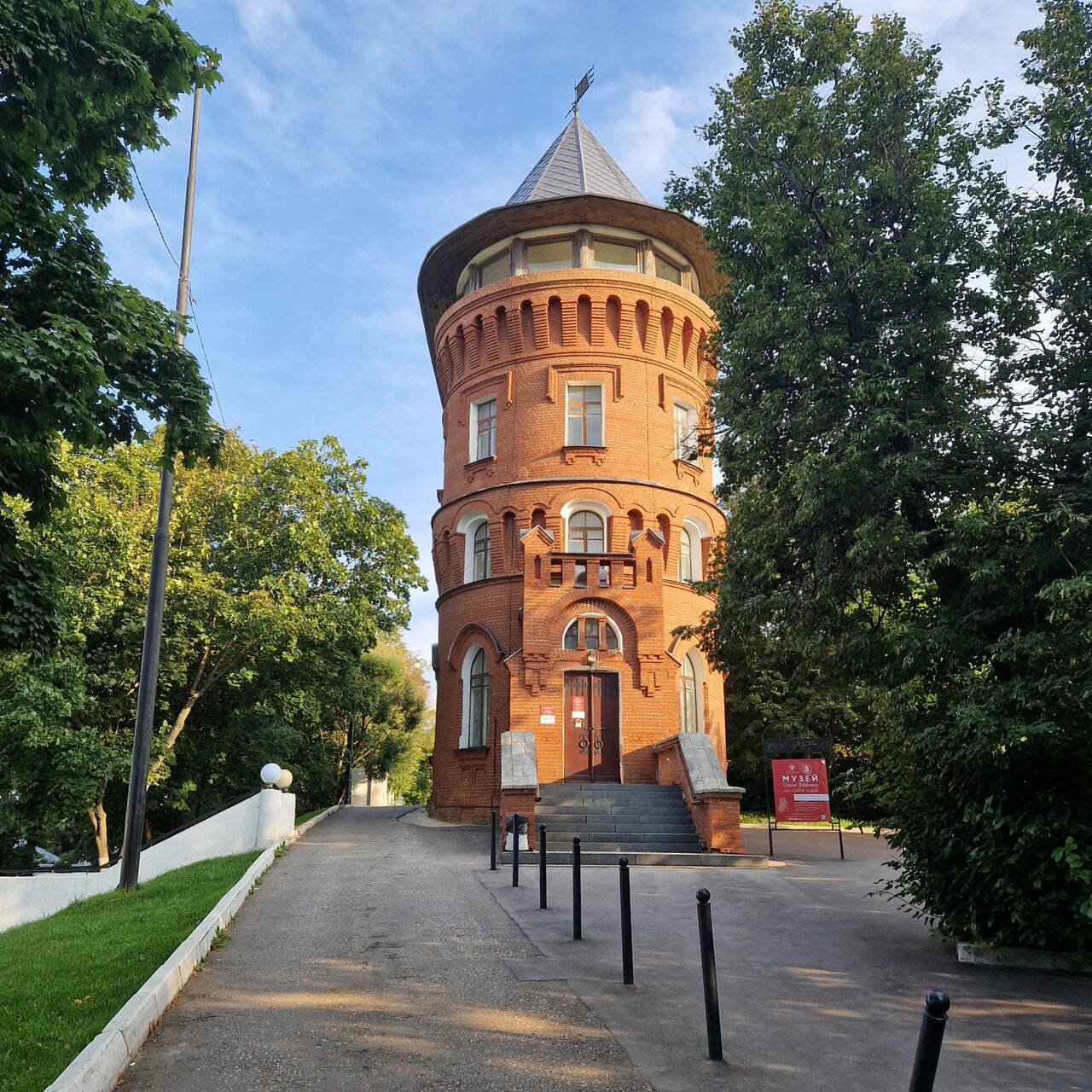 - Осмотр Водонапорной башни: в конце улицы находится красная кирпичная башня — это здание бывшей водонапорной башни, а сейчас в нем расположен музей «Старый Владимир». Экспозиция внутри очень любопытная: она воссоздает атмосферу губернского города конца XIX – начала XX века. Вы увидите интерьеры комнат, вывески магазинов, узнаете, как жили горожане сто лет назад. Но главный сюрприз ждет наверху — на башне оборудована лучшая в городе круговая смотровая площадка, откуда Владимир виден как на ладони.